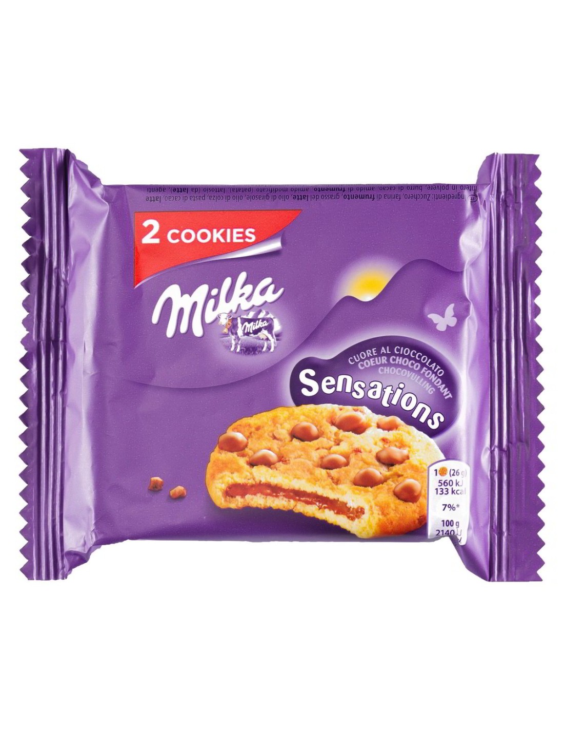 Ingredienti: zucchero, farina di FRUMENTO, olio di palma, grasso del LATTE, olio di colza, pasta di cacao, LATTE intero in polvere, burro di cacao, amido di FRUMENTO, lattosio (da LATTE), amido modificato, agenti lievitanti (carbonati di ammonio, carbonati di sodio, difosfati), siero di LATTE in polvere, cacao magro in polvere, emulsionante (lecitine di SOIA), sale, aromi (contiene LATTE), LATTE scremato in polvere, colorante (caroteni), fibra di SOIA in polvere. PUÒ CONTENERE UOVA FRUTTA A GUSCIO.