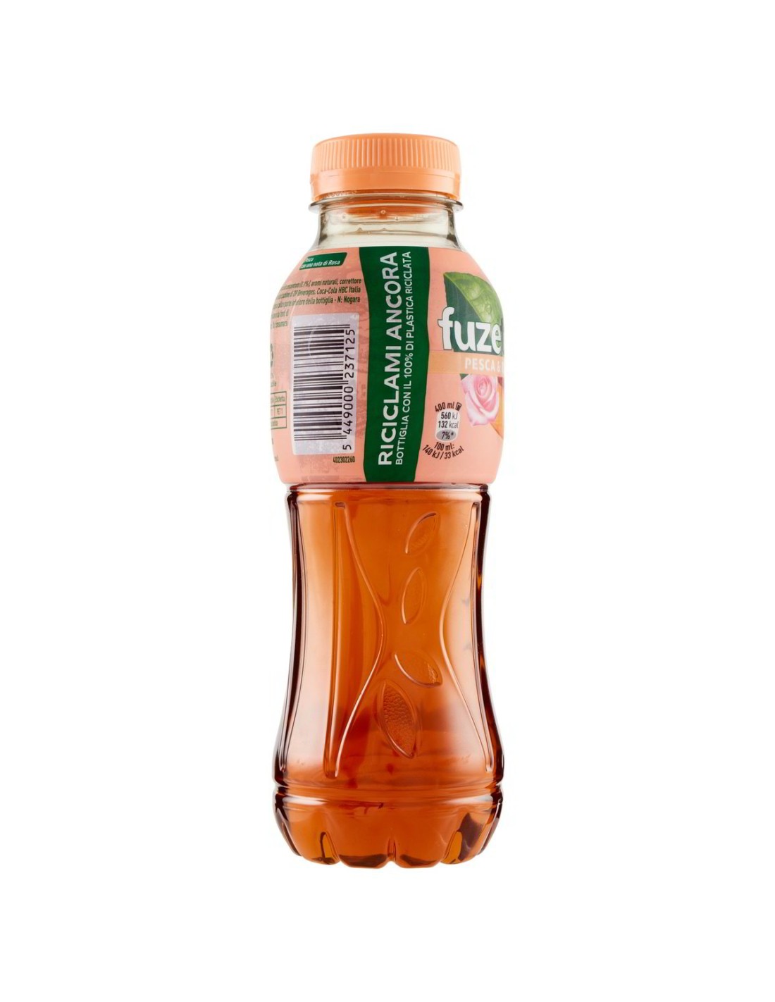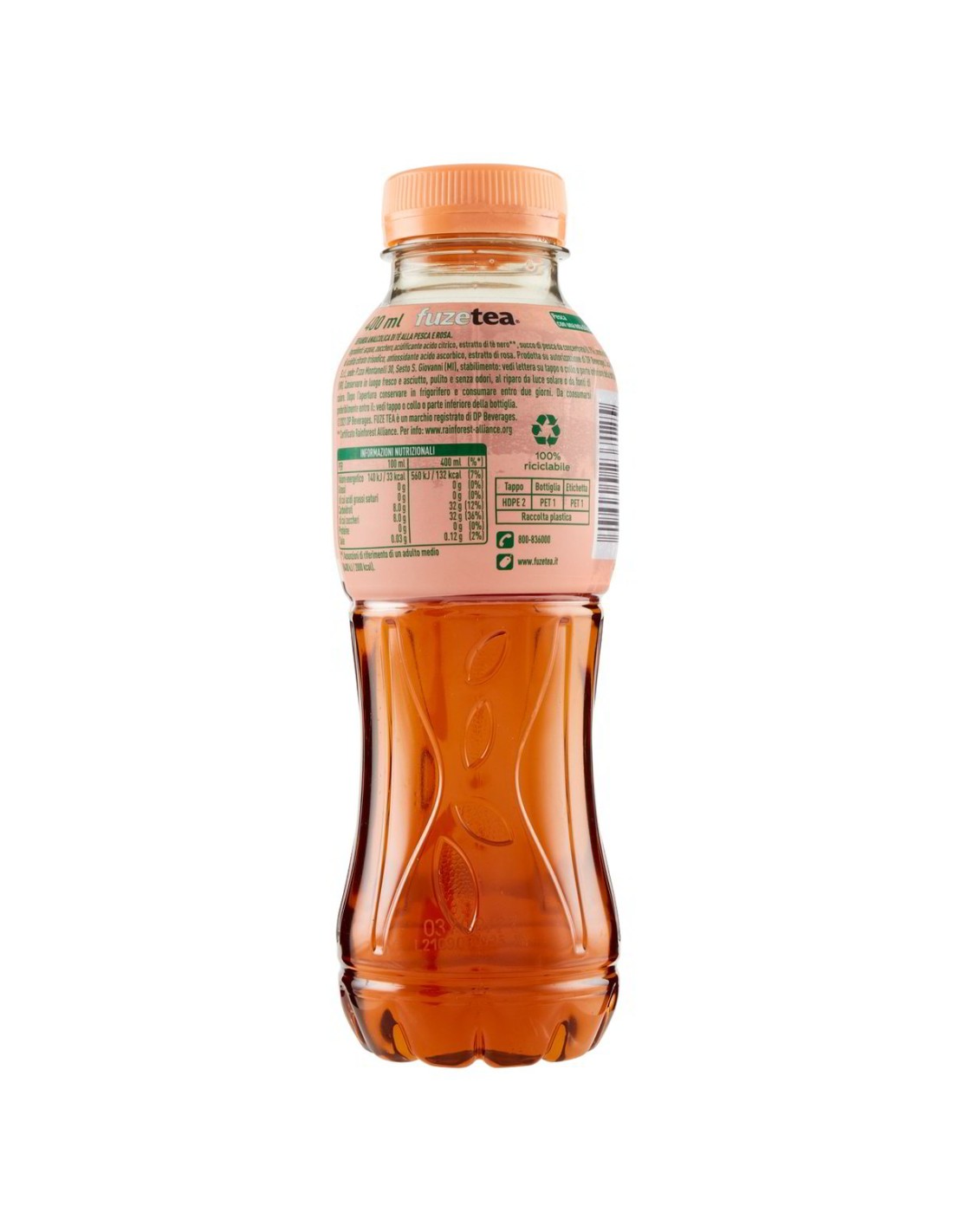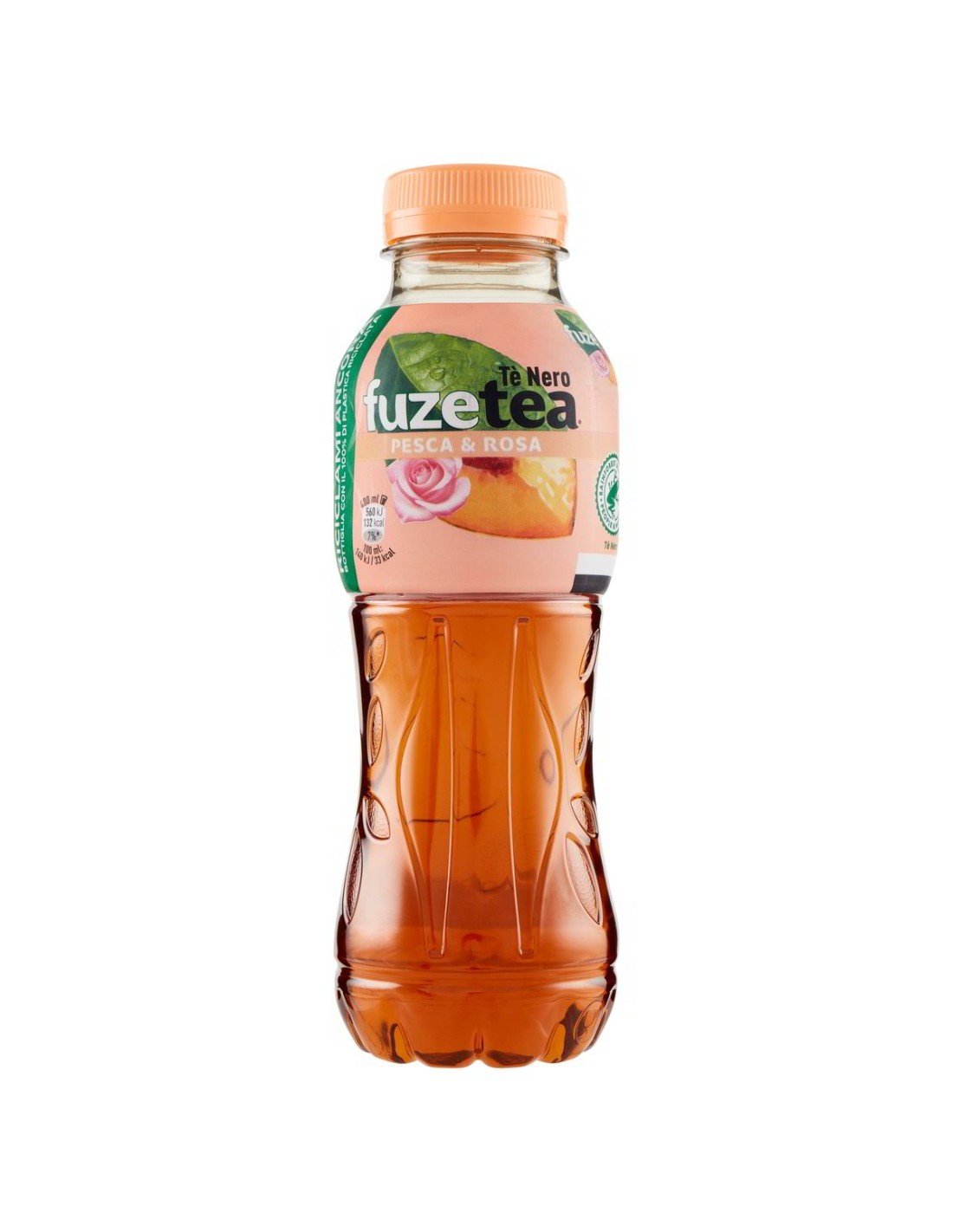 Acqua, Zucchero, Acidificante acido citrico, Estratto di tè nero** (Rainforest Alliance), Succo di pesca da concentrato (0,1%), Aromi naturali, Correttore di acidità citrato trisodico, Antiossidante acido ascorbico, Estratto di rosa.